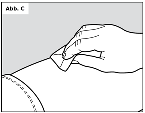 - Очистите область кожи спиртовым тампоном (см. Рис. С), чтобы снизить риск заражения.
