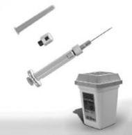 Nach Beenden der Injektion entsorgen Sie die Spritze und Injektionsnadel in einem geeigneten Behälter für scharfkantige Objekte. Papierreste und benutzte Tupfer können zum normalen Abfall gegeben werden.