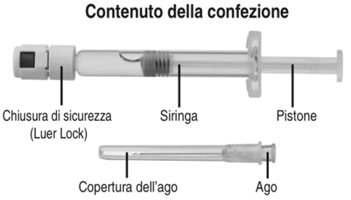 Jede Packung enthält 4 Einzeldosispackungen. Eine Einzeldosispackung besteht aus 1 Fertigspritze und 1 Injektionsnadel zur intramuskulären (i.m.) Injektion. Je nach Körpergewicht können Sie in Absprache mit Ihrem Arzt bzw. Ihrer Ärztin oder dem Pflegepersonal eine kürzere und dünnere Injektionsnadel verwenden. Besprechen Sie bitte mit Ihrem Arzt bzw. Ihrer Ärztin oder dem Pflegepersonal, ob diese für Sie geeignet ist.