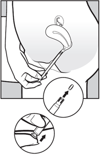 3. Когда вы достигнете правильного положения, нажимайте на конец поршня, пока не почувствуете щелчок (появится вагинальная таблетка Вагифем 10 мкг).
